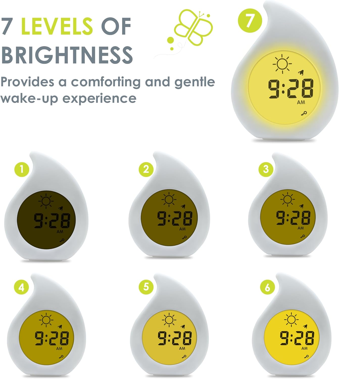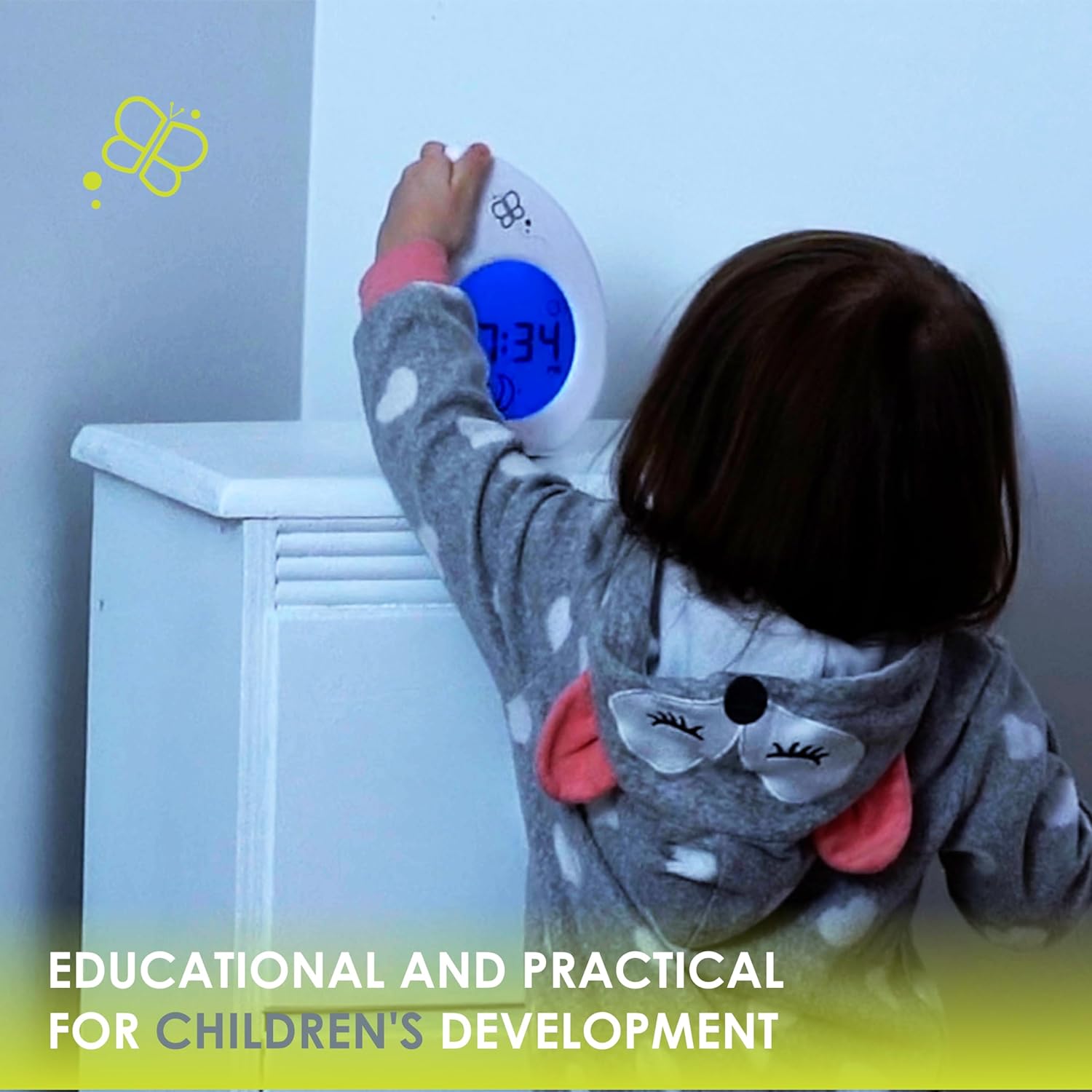 Klöck tanuló óra gyorsan a kicsik szobájának alapdarabja lehet. Ez a többfunkciós termék egy ébresztőóra, éjszakai lámpa és tanulóeszköz egyben. Használja intuitív színváltó- és ikonrendszerét, hogy segítsen gyermekének megtanulni, hogy mikor kell aludni és mikor kell felébredni. Ezután tanítsa meg gyermekét, hogy mondja meg az időt a nagy kontrasztú kijelzőn. A Klöck szórakoztató és játékos pillanattá varázsolja a lefekvést, amelyet megoszthat a kicsivel.