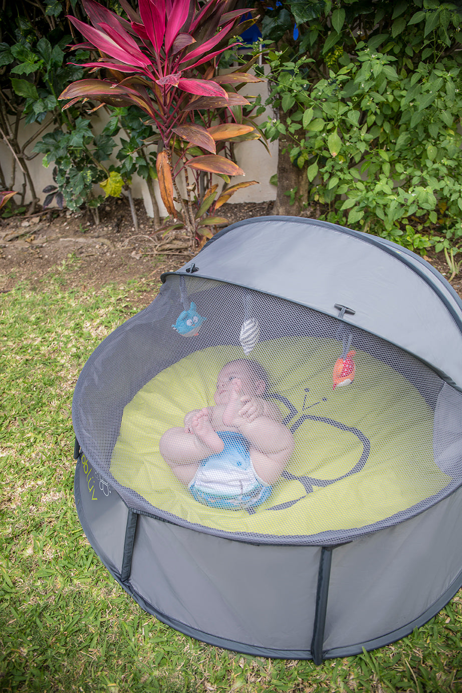 A Nidö különleges szövete SPF 50 védőpajzsot nyújt, amely megóvja a baba érzékeny bőrét az UVA és UVB sugarak káros hatásaitól. Emellett a beépített szúnyogháló és a kupola segítségével a szúnyogok távol tarthatók, így a kisbabák zavartalanul élvezhetik a szabadtéri játékot és pihenést. A játszósátor könnyen összecsukható és kibontható, így azonnal használatra kész, és a kompakt méretének köszönhetően könnyen szállítható akár kézipoggyászként is.Kényelmes matracot is tartalmaz.