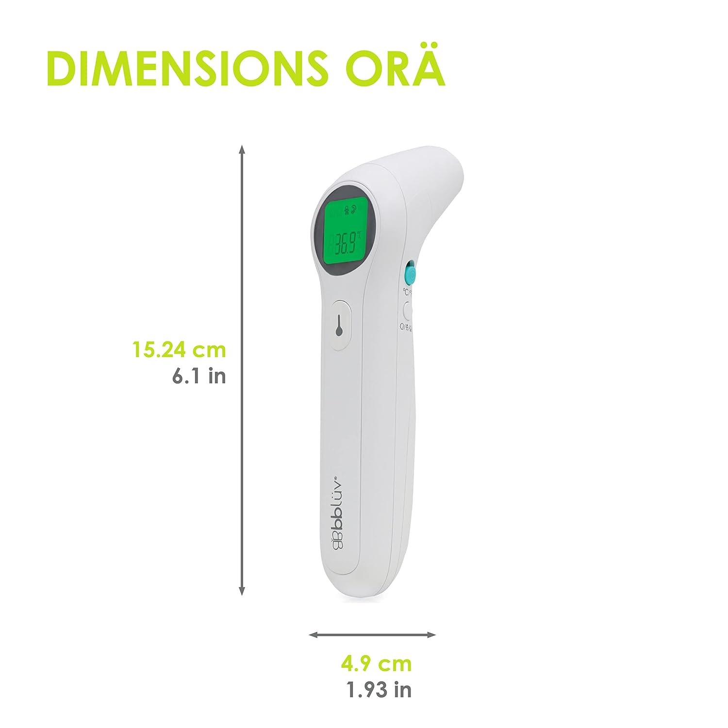 A BBlüv Ora 5 az 1-ben hőmérő egy sokoldalú, modern eszköz, amely rendkívül praktikus és könnyen használható, ideális családok számára. Az Ora hőmérő számos funkcióval rendelkezik, amely megkönnyíti a testhőmérséklet, a környezeti hőmérséklet, valamint a különböző tárgyak és folyadékok hőmérsékletének mérését.