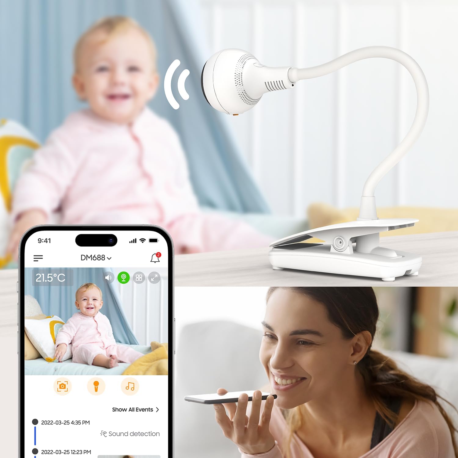 A DM685 Smart Giraffe Clip a modern szülők tökéletes segítőtársa, amely kényelmesen alkalmazkodik bármelyik helyzethez, és biztosítja, hogy mindig szemmel tarthassa kisbabáját.