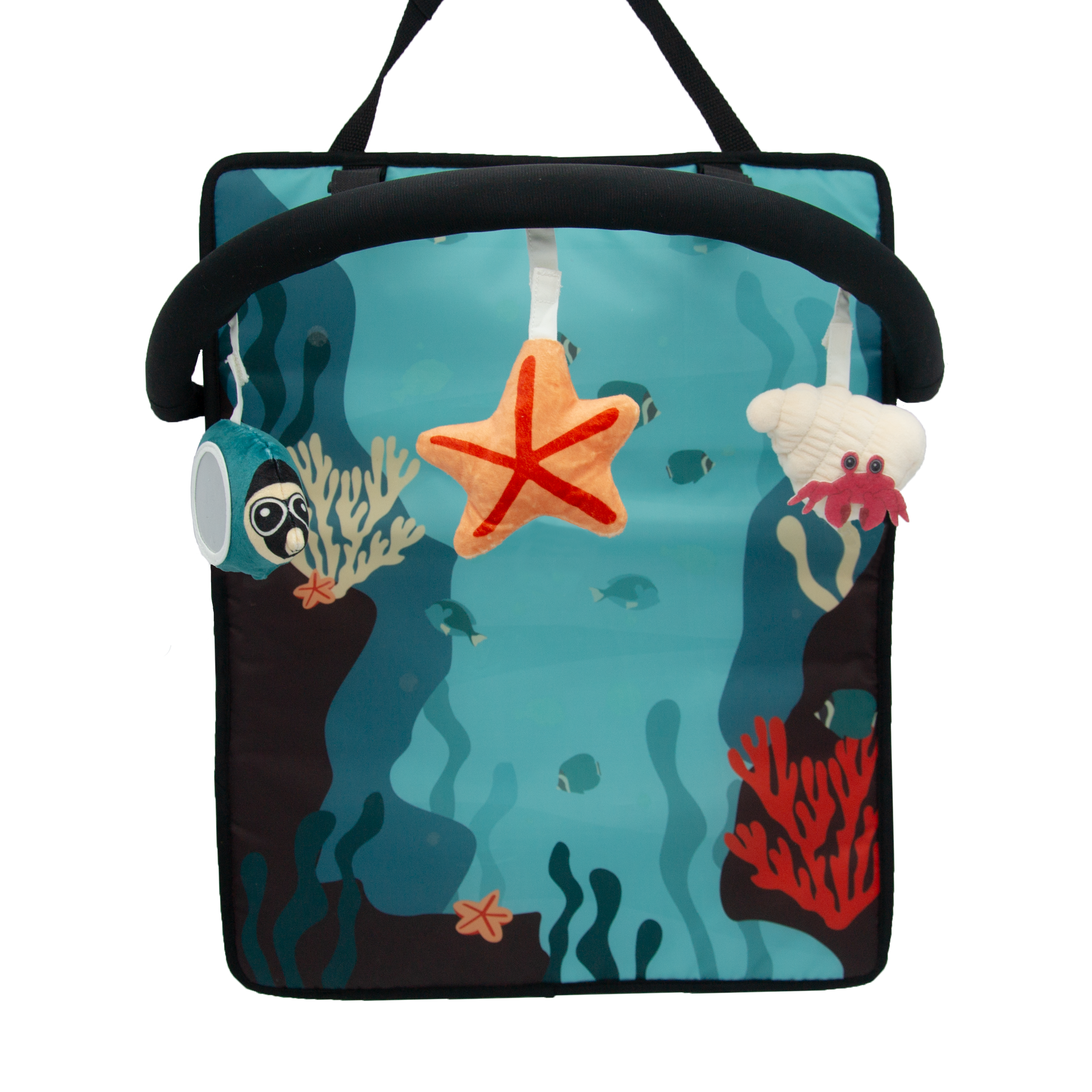 Ez az innovatív játékív tökéletes társ az autóutak során: lefoglalja a babát utazás közben, teljesen biztonságos és természetes élményt biztosít.