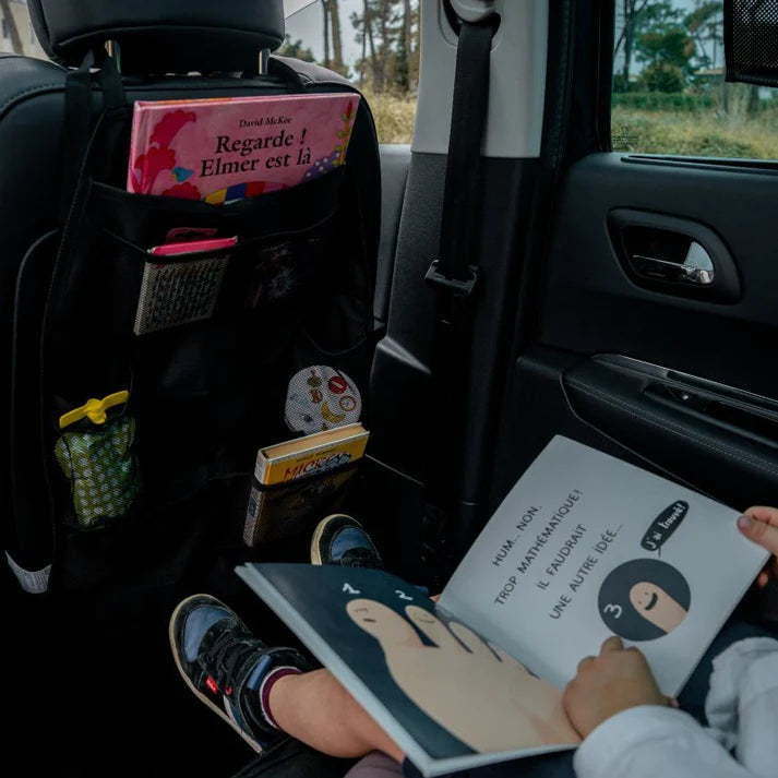 - 1 db EZI TRAVEL PLUS : háttámlavédő számos zsebbel a tökéletes rendszerezéshez az autós utazások idejére